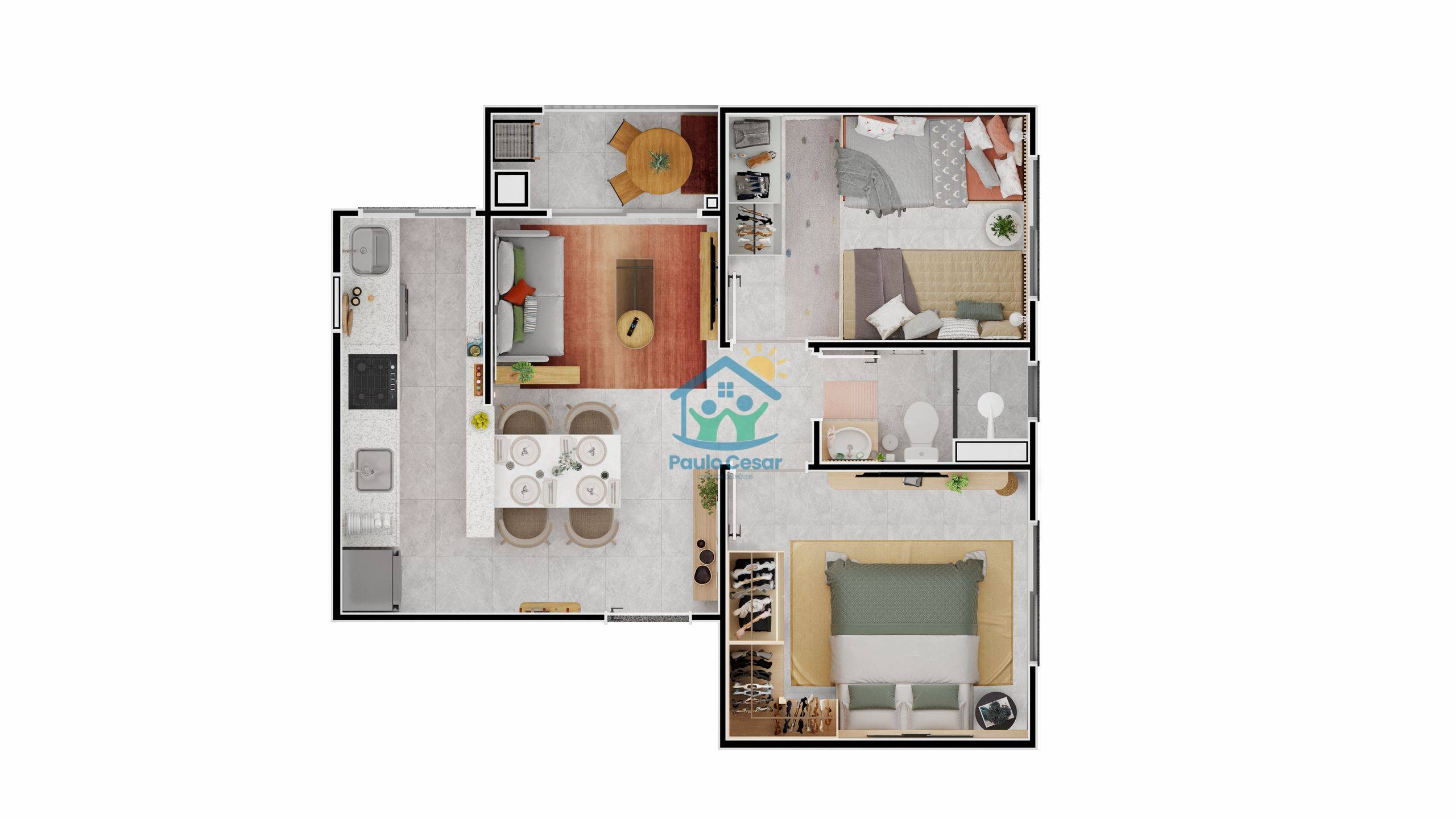 Apartamentos de 2 quartos, sacada com churrasqueira, vaga de garagem e área de lazer completa com piscina, quadra poliesportiva e muito mais.